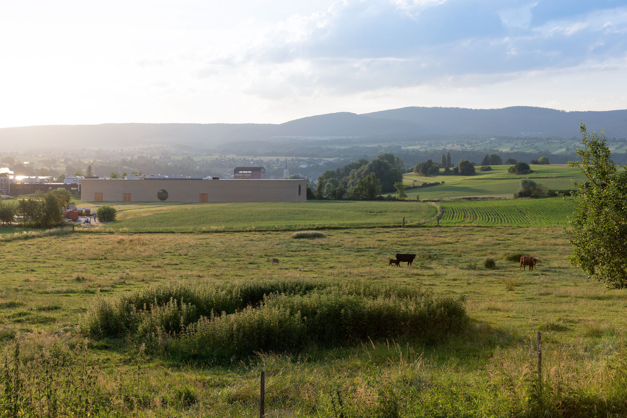 The Kräuterzentrum is built largely out of locally sourced earth; it is like a geometrical segment of landscape with its dimensions and archaic impact heightened by the radical choice of material. Herbs and earth define the purpose-built, distinctive character of the center, following in the footsteps of Ricola‘s other buildings: the fully automated storage building of 1987, the production and storage building of 1993 in Mulhouse-Brunstatt with its screenprint façade and the glazed marketing headquarters of 1999 in Laufen. These buildings not only embody Ricola’s exceptional philosophy and commitment to the environment, they each make a striking contribution to their locations.