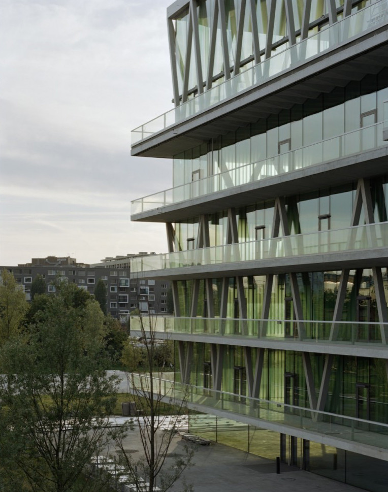 In order to preserve the spaciousness of the site, all the rooms inside the building were reduced to the lowest common denominator and stacked atop one another, with public functions accommodated in mezzanines.