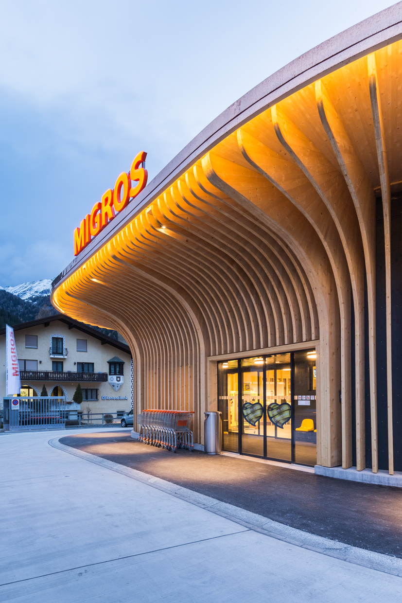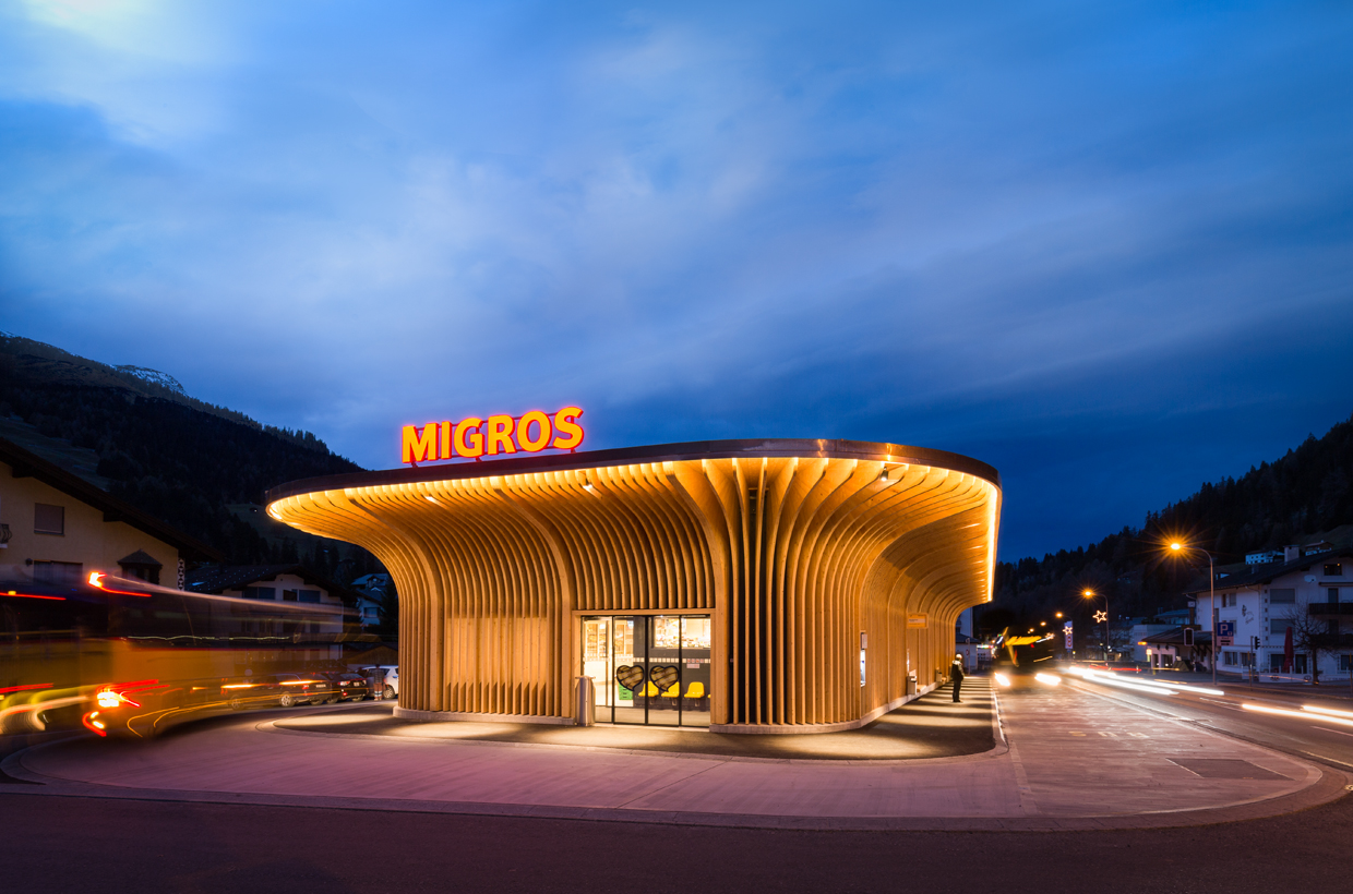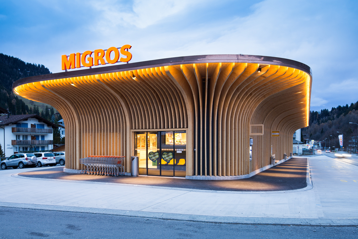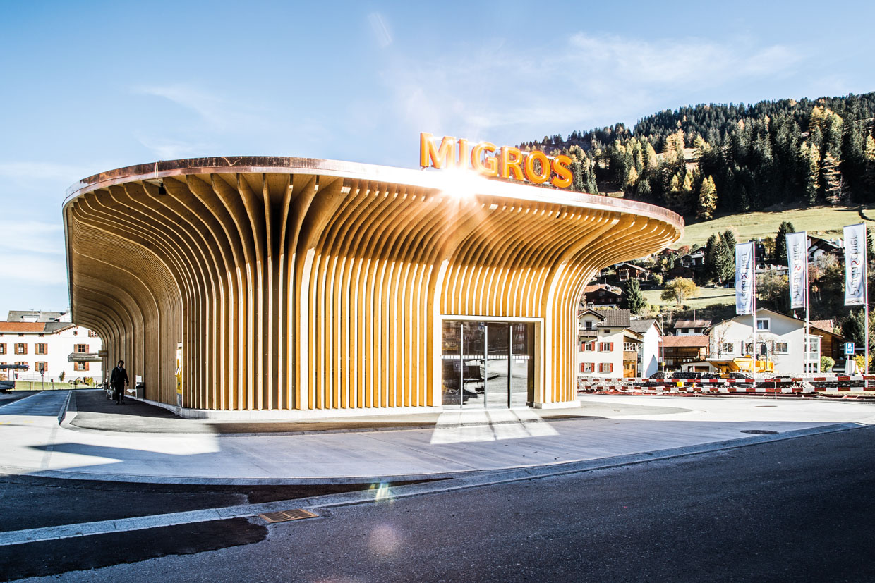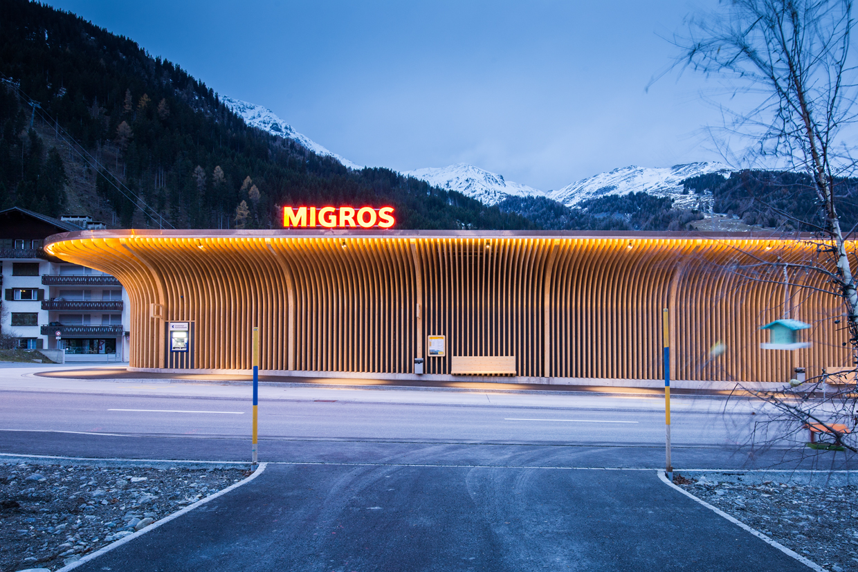 Ritter Schumacher: Bus station + Migros grocery store Churwalden